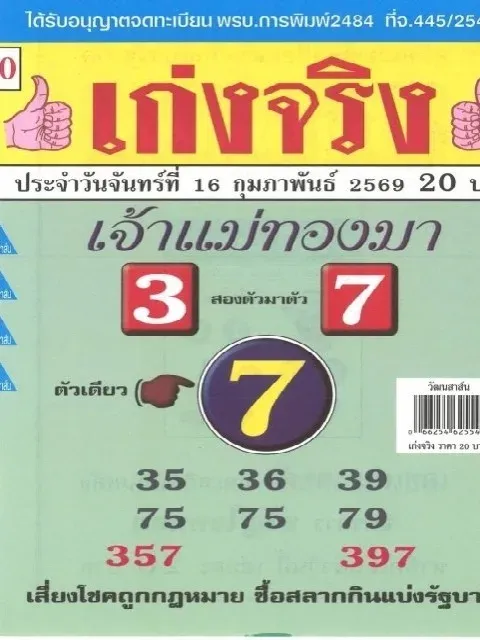 10 เลขขายดี "สลากใบแดง" งวดวันที่ 16 กุมภาพันธ์ 69..พรุ่งนี้รวย รีบซื้อหวยด่วน!!