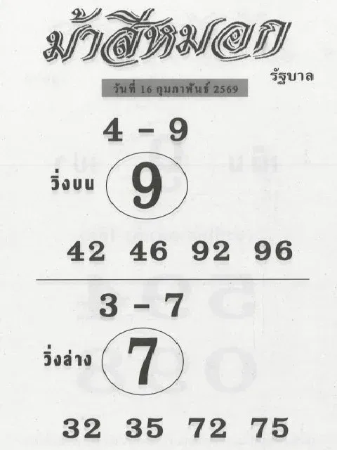 สิบเลขขายดี สลากตัวเลขสามหลัก N3 งวด 16/2/69