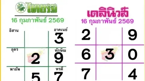 4 สำนักดังงวด 16 ก.พ. 69 ชนเลขสนั่น! ไทยรัฐ–เดลินิวส์–บางกอกทูเดย์ รวมแล้ว 0-2-3-5-6-7-9 เด่นจัด