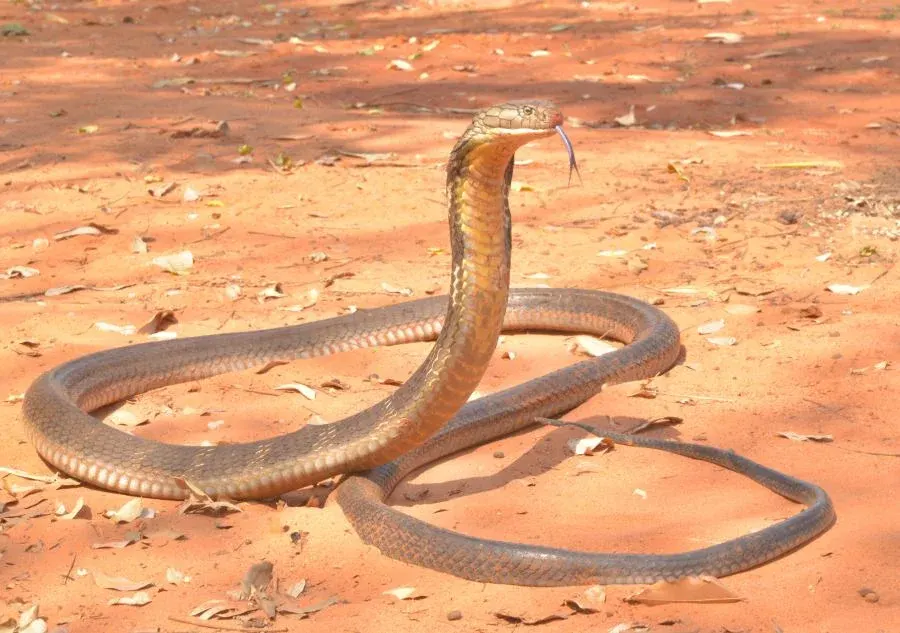 เริ่มจากตัวใหญ่ก่อนเลยนะ งูจงอางที่โตเต็มวัยจะดู “สง่า” มาก ๆ จุดสังเกตชัดคือหัวจะค่อนข้างใหญ่ ดูมีมิติ แล้วเกล็ดจะเรียบเนียนกว่างูหลายชนิด สีโดยรวมมักออกไปทางเขียวขี้ม้าหรือน้ำตาลวาว ๆ พอมันขยับจะดูเงานิด ๆ ยิ่งถ้าอยู่ในแสงธรรมชาติคือเห็นชัดเลยว่าลำตัวแน่น แข็งแรง และดูเป็นนักล่าตัวจริง