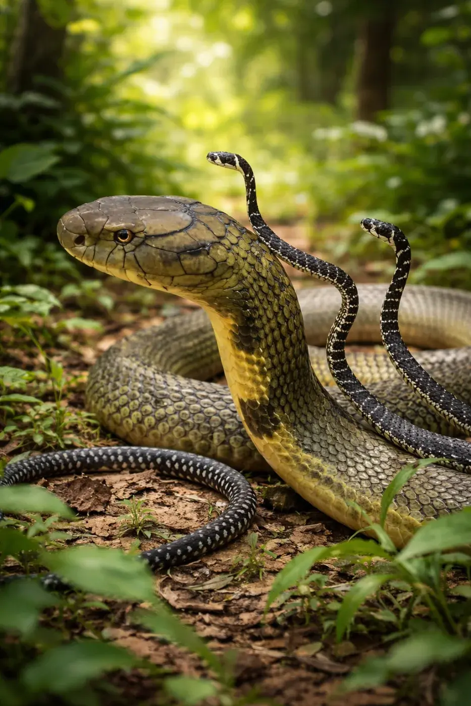 ความแตกต่างที่น่าทึ่งระหว่าง "งูจงอาง" (King Cobra) ในช่วงอายุที่แตกต่างกันระหว่างลูกงู และงูที่โตเต็มวัยแล้ว