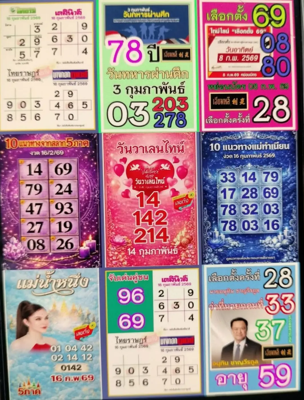 4 สำนักดังงวด 16 ก.พ. 69 ชนเลขสนั่น! ไทยรัฐ–เดลินิวส์–บางกอกทูเดย์ รวมแล้ว 0-2-3-5-6-7-9 เด่นจัด