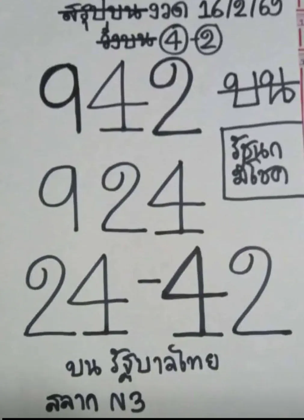 สิบเลขขายดี สลากตัวเลขสามหลัก N3 งวด 16/2/69