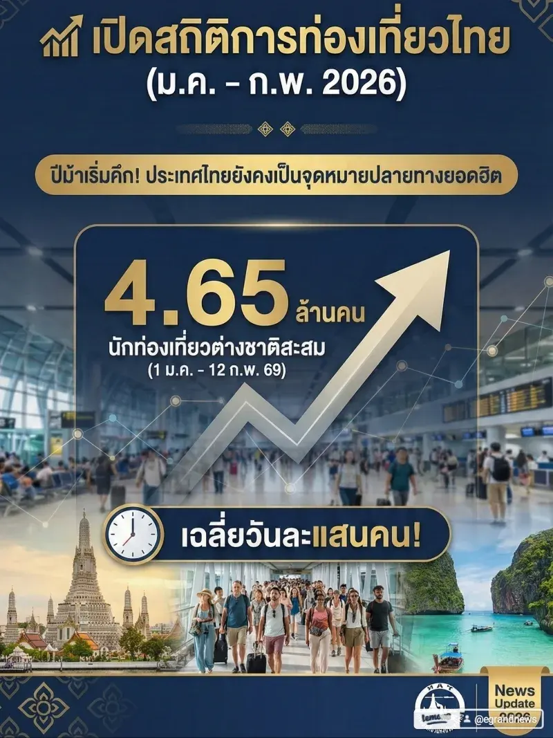 📈 เปิดสถิติการท่องเที่ยวไทย (ม.ค. - ก.พ. 2026)