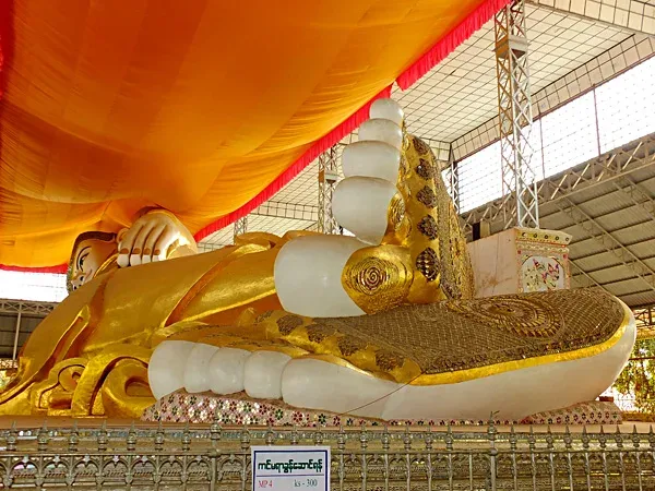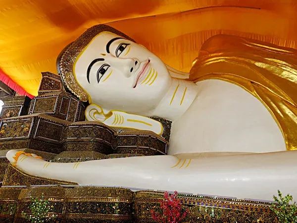 องค์พระมีขนาดใหญ่อลังการสมชื่อ ความยาวประมาณ 55 เมตร และสูงราว 16 เมตร ตั้งอยู่ในเมืองพะโค (Bago) และยังถูกยกให้เป็นหนึ่งในพระนอนที่เก่าแก่ที่สุดองค์หนึ่งของพม่า จุดที่ทำให้หลายคนประทับใจไม่ใช่แค่ “ใหญ่” แต่เป็นความ “ละเมียด” ของพุทธศิลป์แบบมอญที่เห็นชัดมาก ต่างจากพระพุทธรูปยุคหลังที่มักดูแข็งแกร่งแบบพม่า พระพักตร์ของชเวตาเลียวจะมีความอ่อนโยน แววตาดูมีชีวิต และรอยยิ้มละไมที่เหมือนค่อยๆ ปลอบใจคนที่มายืนอยู่ตรงหน้า