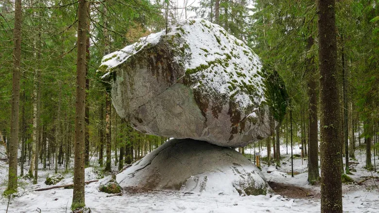 ท่ามกลางผืนป่าสนเงียบสงบของเขต South Karelia ทางตะวันออกเฉียงใต้ของฟินแลนด์ มีภาพที่เห็นแล้วชวนให้เราต้องหยุดมองด้วยความทึ่ง กับก้อนหินก้อนมหึมาที่ “ทรงตัว” อยู่บนหินอีกก้อนได้อย่างไม่น่าเชื่อ ราวกับพร้อมจะกลิ้งหล่นได้ทุกเมื่อ แต่กลับนิ่งสนิทมานานนับหมื่นปี หินก้อนนี้มีชื่อว่า Kummakivi หรือแปลตรงตัวได้ประมาณว่า “หินประหลาด” เป็นหนึ่งในตัวอย่างของหินประเภท balancing rock ที่ธรรมชาติสร้างขึ้นเอง และทำให้ผู้คนเล่าขานกันทั้งเชิงตำนานและเชิงวิทยาศาสตร์
