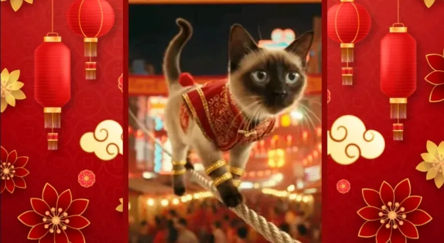 ในคืนเทศกาลตรุษจีนปี 2026 บนถนนเยาวราชที่เต็มไปด้วยโคมแดง แสงไฟ และเสียงประทัด ลูกแมวหลายสายพันธุ์รวมตัวกันจัดการแสดงสุดยิ่งใหญ่ฉลองปีใหม่จีน ทั้งเชิดสิงโต ตีกลอง ไต่เชือก และโชว์กายกรรมกลางอากาศ ท่ามกลางฝูงชนที่แน่นขนัดและบรรยากาศสุดคึกคัก