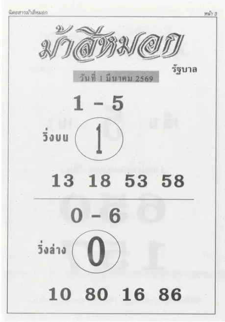 เลขเด็ดนิตยสารเงินล้าน งวด 1 มีนาคม 2569
