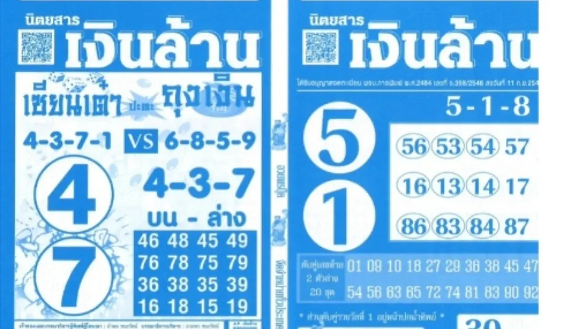 เลขเด็ดนิตยสารเงินล้าน งวด 1 มีนาคม 2569