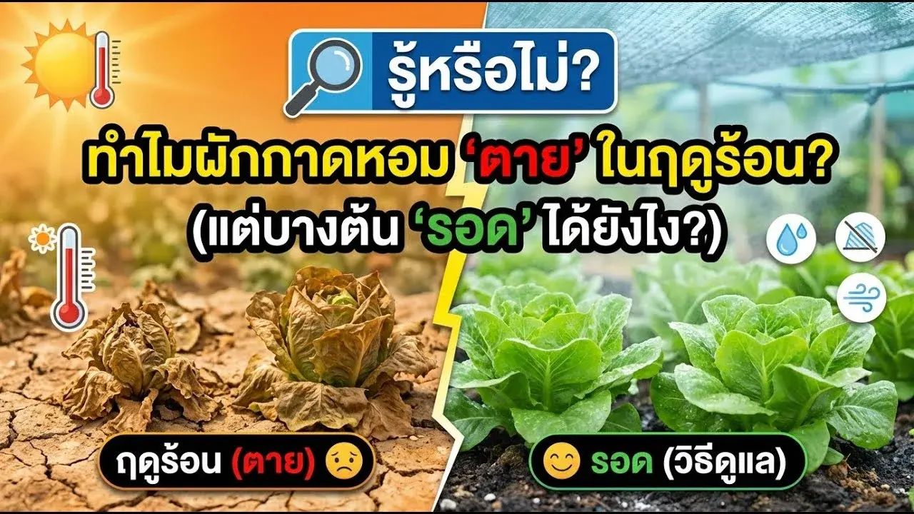 "การจัดการสภาพแวดล้อมง่ายๆ เช่น การคลุมดินและรดน้ำเป็นกุญแจที่ทำให้ผักกาดรอดจากความร้อน" — เคล็ดลับจากคลิป
