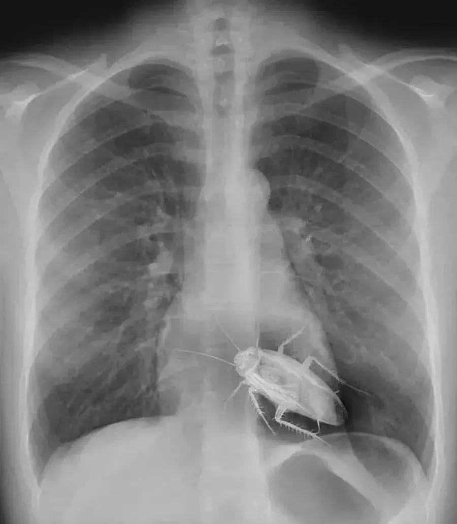 มันเข้าไปทำอะไรในนั้น? แมลงสาบเจ้ากรรม มันดันคลานเข้าไปติดอยู่ตรงบริเวณ กระจกหรือกล่องรับสัญญาณภาพ ของเครื่องเอกซเรย์ในจังหวะที่กดถ่ายพอดี