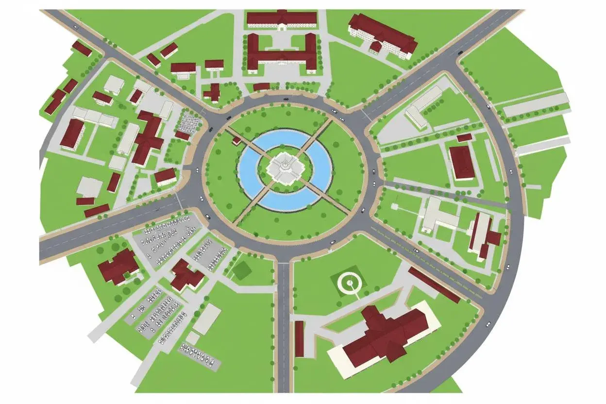 ประกอบด้วยถนนวงแหวนรอบเมืองตัดออกเป็นรัศมี คล้ายกลีบดอกบัว