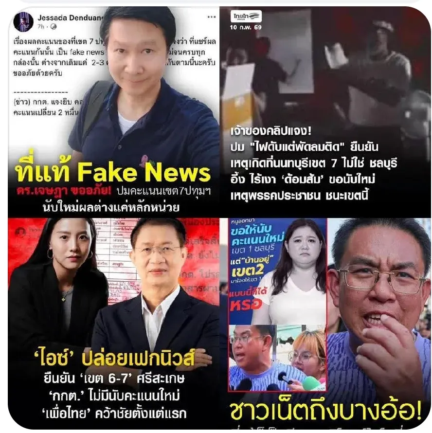 1. ปทุมธานีเขต 7 เต้าข่าวว่านับคะแนนใหม่ แล้วพรรคประชาชนพลิกกลับมาชนะ ทั่งที่ความจริงนับใหม่ 2-3 รอบ ภูมิใจไทยไทยก็ชนะเหมือนเดิม