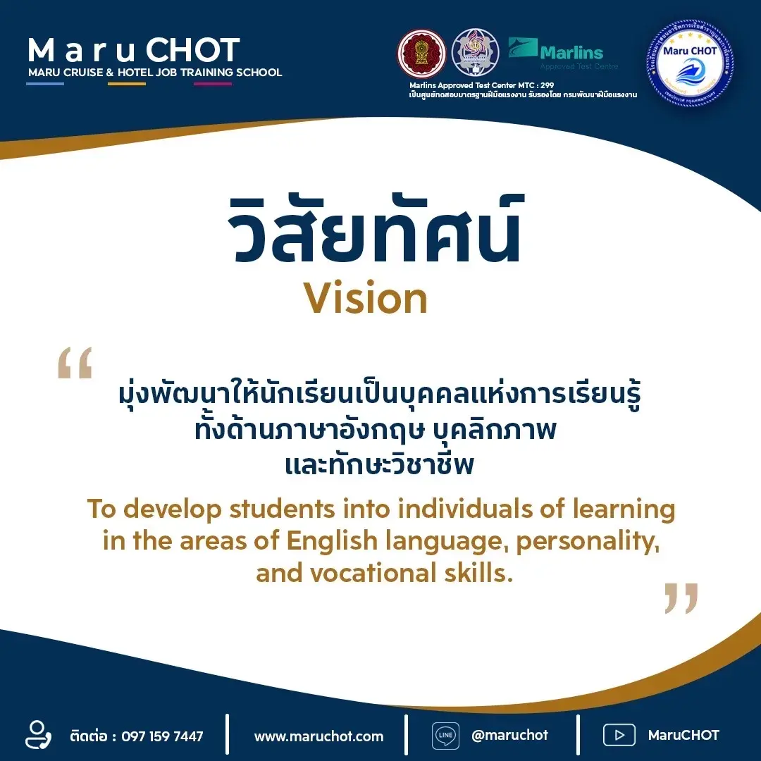 MaruCHOT Vision วิสัยทัศน์: สร้างสรรค์บุคลากรแห่งอนาคต ด้วยภาษา บุคลิกภาพ และทักษะวิชาชีพ