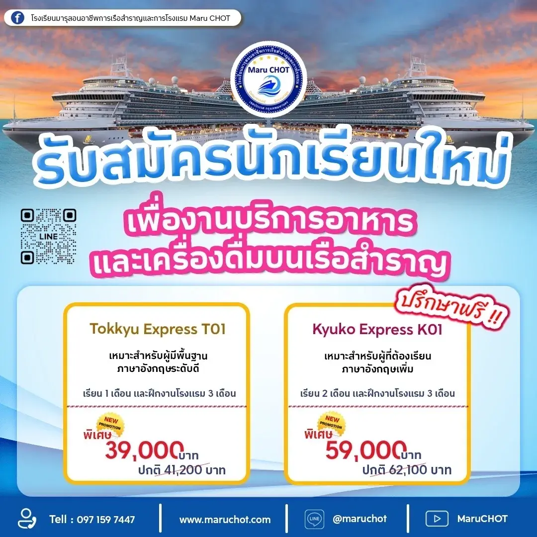 อยากเรียนทำงานเรือสำราญ นึกถึงเราโรงเรียน มารุโชติ หลักสูตรกสรบริการอาหารและเครื่องดื่ม 240 ชั่วโมง