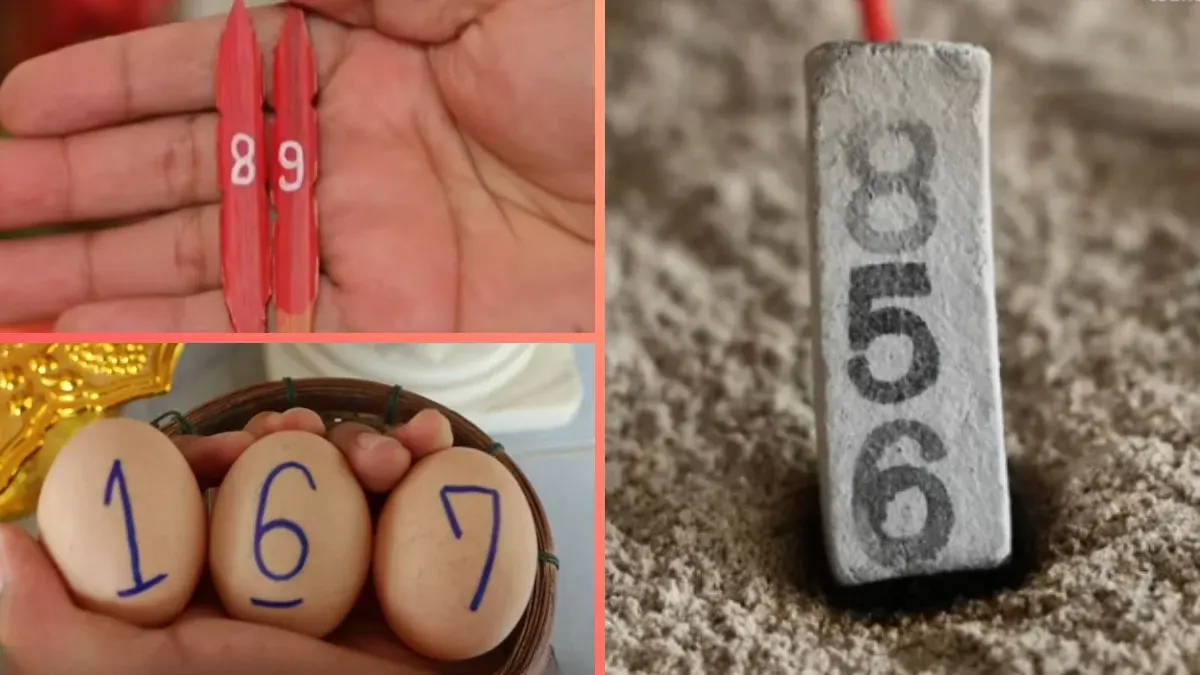 เลขจากการล้วงไห (จับลูกปิงปอง): ปรากฏตัวเลข 3 ใบ เรียงตามลำดับคือ 1, 6 และ 7 ได้เลขชุด 167 โดยควรกันเลข 197 ไว้เป็นอีกทางเลือกหนึ่ง
