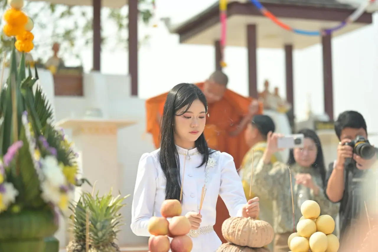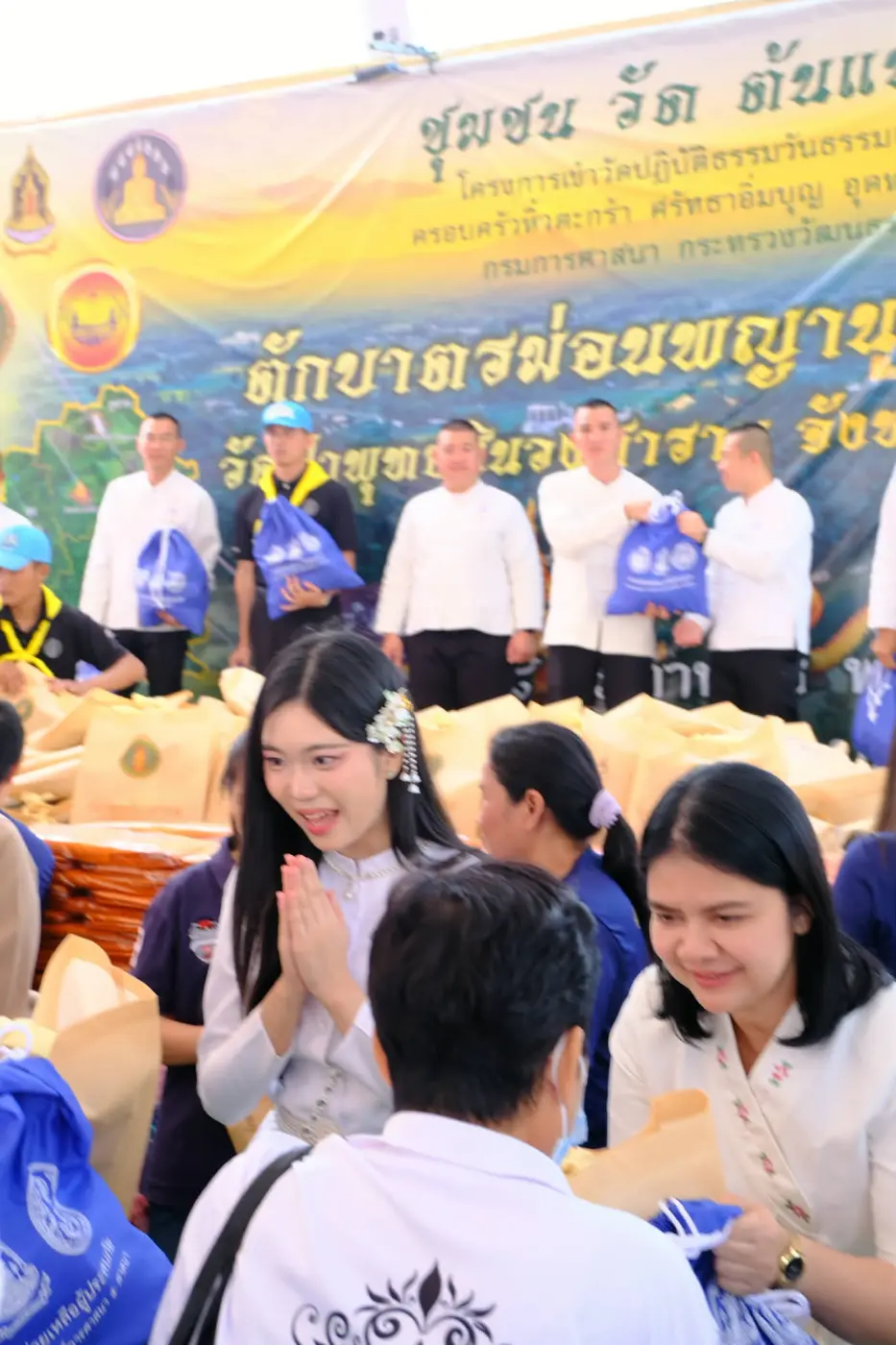 ในงานนี้ได้รับเกียรติจาก "ซูริ-สรัสวดี สุขยิ่ง" นักแสดงดาวรุ่งจากค่าย มหามงคลฟิล์ม มาร่วมเป็นพุทธศาสนิกชนตัวอย่าง แต่งกายด้วยชุดพื้นเมืองสีขาวสะอาดตา สะท้อนเอกลักษณ์วัฒนธรรมไทยที่งดงาม โดยซูริได้ร่วมกิจกรรมตักบาตรและมอบถุงยังชีพร่วมกับคณะผู้บริหารจากกรมการศาสนาและกลุ่มจิตอาสาพระราชทาน เพื่อส่งต่อความปรารถนาดีไปยังคนในชุมชน