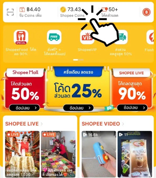 อย่างแรกเลย กดเข้า Shopee Coins เพื่อเข้าไปรับเหรียญ