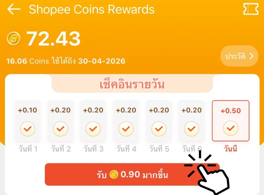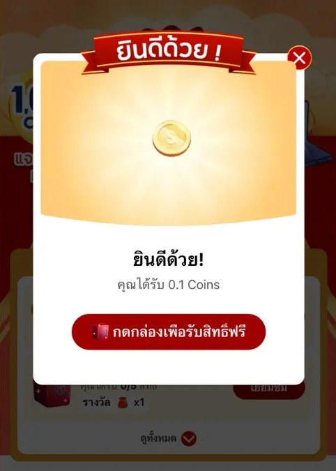 ต่อมาเมื่อคุณรับเหรียญเรียบร้อยแล้ว ก็จะมีแทบสีแดงขึ้น หรือ "รับ เหรียญ 0.90 มากขึ้น" ซึ่งในแต่ละวันก็จะเฉลี่ยอยู่ที่ 0.70-0.90 ที่สามารถรับเพิ่มได้ ให้คุณเอานิ้วคลิกเข้าไป