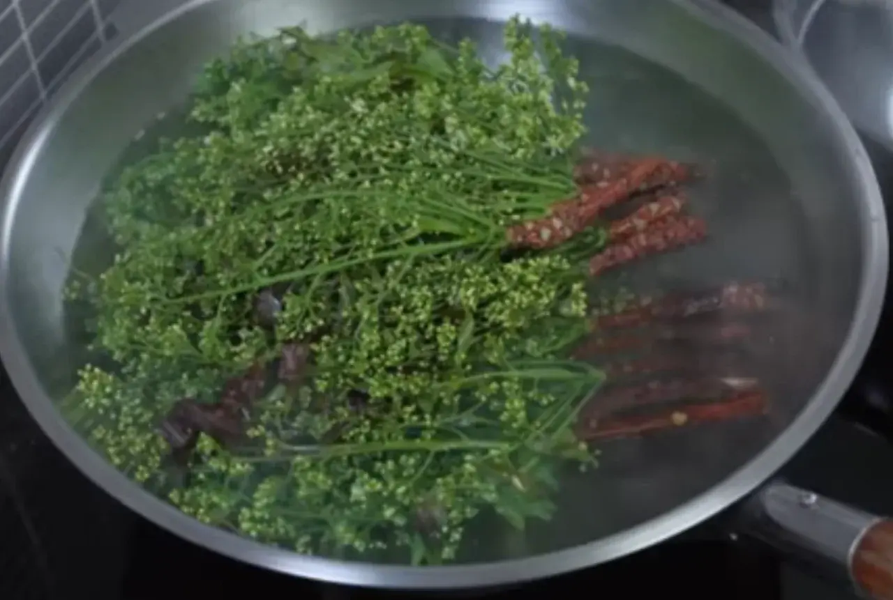 1. เริ่มจากนำน้ำตั้งกระทะต้มจนเดือด เพื่อลวกสะเดาที่เราล้างทำความสะอาดพวกฝุ่นละอองเรียบร้อยแล้ว