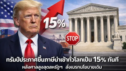 ทรัมป์ประกาศขึ้นภาษีนำเข้าทั่วโลกเป็น 15% ทันที หลังศาลสูงสุดสหรัฐฯ สั่งเบรกนโยบายเดิม