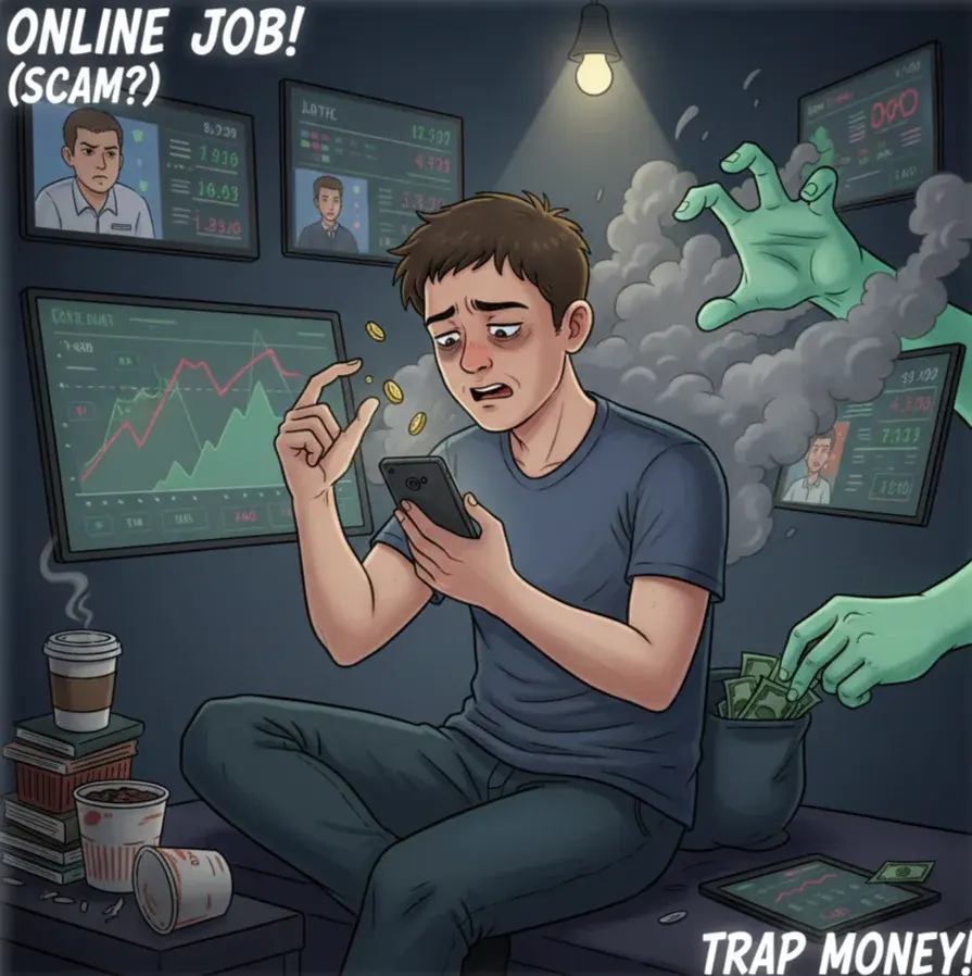 สวัสดีครับพี่น้อง ทุกท่าน ผม "วิน" ครับ วันนี้ผมขออนุญาตมาพูดเรื่องที่เจ็บปวดสำหรับคนยุคนี้ คือเรื่อง "การจ้างงานออนไลน์" ครับ ในยุคที่เศรษฐกิจฝืดเคือง ใครๆ ก็อยากมีรายได้เสริม แต่รู้ไหมครับว่าคำว่า "งานง่าย" มักจะตามมาด้วย "ราคาแพง" ที่เราต้องจ่ายด้วยสุขภาพและเวลาเสมอ