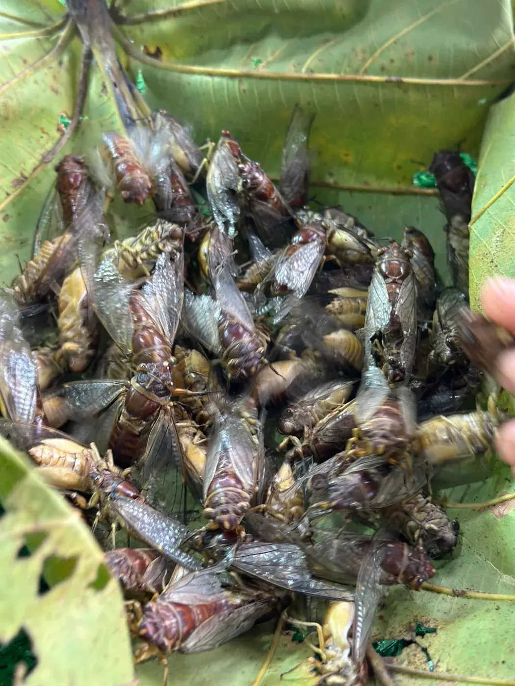 ป้าบอกเราว่าการที่เขานั้นจะติดได้เพราะว่าจั๊กจั่นคนนั้นนอนพักผ่อนอย่างสบายในยามบ่าย ยังไม่ตื่น จึงทำให้เรานั้นสามารถที่จะเก็บมาได้อย่างง่ายดาย ตัวสีสันนั้นงดงามมากไม่ว่าอย่างไรเราจะนำเพื่ออาหาร ตอนที่มองในตอนแรกนั้นคืดว่ามันไม่น่าอร่อย แต่ความชอบของคนเรานั้นต่างกัน จึงเป็นที่มาของอาหารหลากหลายอย่างประสมปนเปกันมากมาย