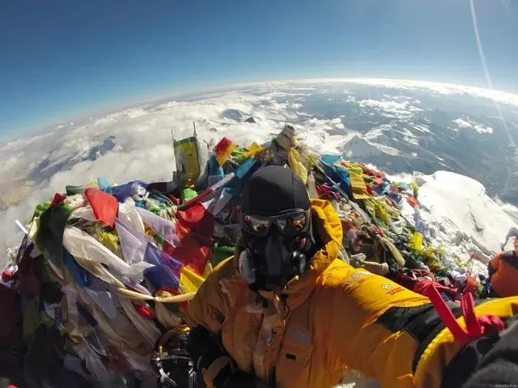 ภาพนี้ถ่ายที่ยอดเขาเอเวอเรสต์ ซึ่งตามที่ช่างภาพคิด คาดว่านี่จะเป็นจุดจบของทฤษฎีโลกแบน อย่างไรก็ตาม ก็มีความคิดเห็นว่านี่เป็นภาพจากมุมมองแบบฟิชอาย และภาพถ่ายด้วยเลนส์โค้ง แต่ปัญหาที่สำคัญที่สุดก็คือภาพนี้ดึงดูดความสนใจไปที่ปริมาณขยะบนยอดเอเวอเรสต์ ซึ่งรวมถึงธงที่คนที่พิชิตยอดเขาได้ทิ้งเอาไว้