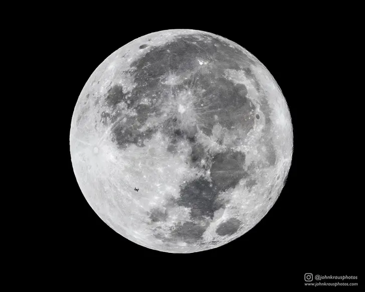 7. ภาพถ่ายจากสถานีอวกาศนานาชาติเบื้องหน้าดวงจันทร์