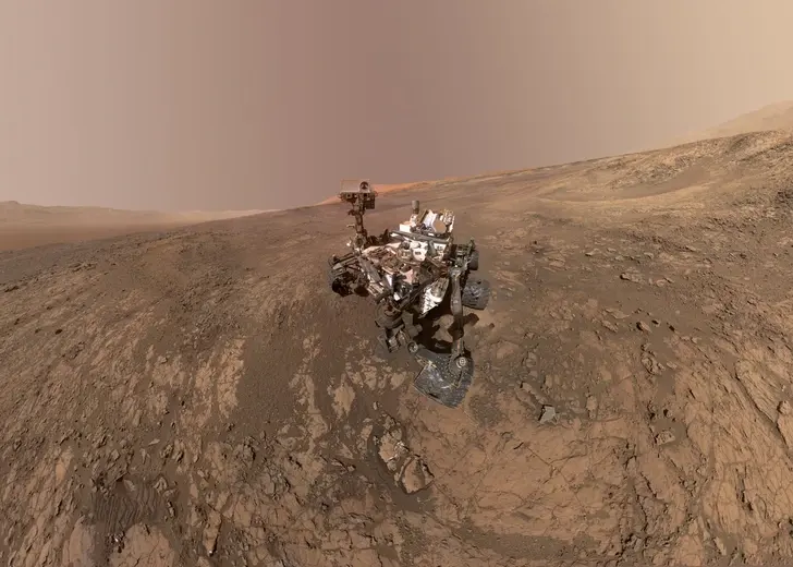 9. หุ่นคิวริออซิตี้ถ่ายภาพเซลฟี่หน้าจุดลงจอดบนดาวอังคาร