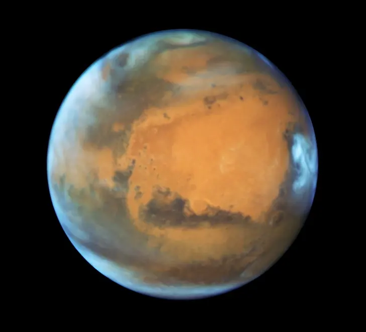 ในเดือนพฤษภาคม ปี 2016 ดาวอังคารซึ่งอยู่ใกล้โลกในระยะทาง 80 ล้านกม. เป็นวัตถุขนาด 30×50 กม. ที่ทำให้กล้องโทรทรรศน์อวกาศฮับเบิล “จับภาพออกมาได้ดูดี” คุณจะเห็นเมฆเหนือขั้วดาวสีแดง ซึ่งก็คือปล่องแคสสินี ปล่อยฮอยเกนส์ และปล่องชิอาพาเรลลี่ แล้วนักวิทยาศาสตร์ก็คิดด้วยว่าครั้งหนึ่งปล่อยพวกนั้นเคยมีน้ำบรรจุไว้ และปล่องแคสสินีก็มีน้ำมากยิ่งกว่าทะเลสาบไบคาลเสียอีก