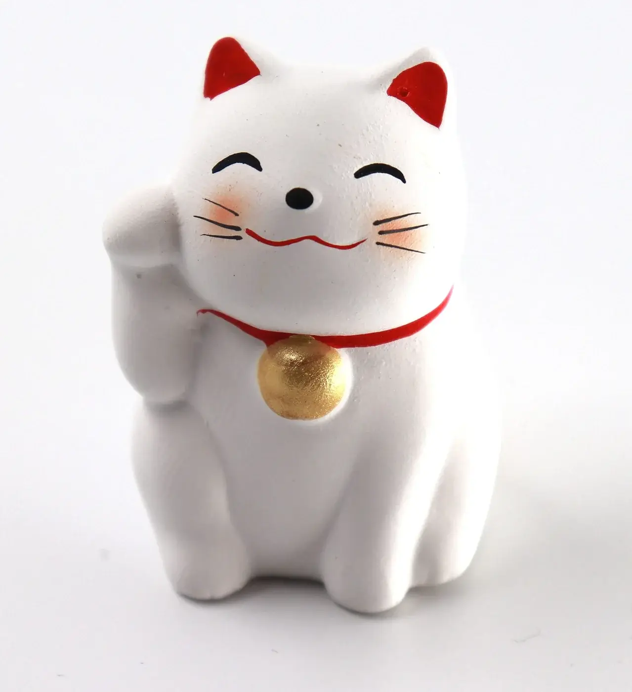 เมื่อเรื่องเล่าเดินทางอยู่ในสังคมพ่อค้าแม่ค้าหรือผู้คนที่ต้องพึ่งพาการขายของเป็นชีวิต เรื่องเล่าก็ค่อย ๆ ถูกแปลงให้ “จับต้องได้” เพราะมนุษย์เราเวลาชีวิตไม่แน่นอน เรามักอยากมีอะไรสักอย่างไว้พึ่งใจ มองเห็นได้ทุกวัน วางไว้ตรงหน้าร้านแล้วเหมือนได้ย้ำกับตัวเองว่า “ขอให้วันนี้ดี ขอให้มีลูกค้า ขอให้มีคนเมตตา” มาเนกิเนโกะจึงค่อย ๆ ถูกทำเป็นตุ๊กตาเซรามิก มีสีสัน มีลวดลาย มีการตีความความหมายของสีแตกต่างกันไป จนมันกลายเป็นของที่ไม่ได้แค่ตั้งโชว์ แต่เป็นเหมือนเครื่องหมายว่าร้านนี้ “ต้อนรับ” ผู้คนด้วยพลังดี ๆ ส่วนฝั่งไทย นางกวักถูกทำเป็นรูปปั้นหญิงไทยนั่งพับเพียบ มือหนึ่งยกกวักเรียก อีกมือถือถุงเงินหรือวางเงินไว้บนตัก ท่วงท่านั้นให้ความรู้สึกแปลกดี คือไม่ได้แค่เรียกให้มา แต่ยังเหมือนบอกว่า “มาแล้วต้องเก็บรักษาให้เป็น” มั่งคั่งแบบไทย ๆ คือเรียกเข้ามาแล้วต้องรู้จักรักษา รู้จักเก็บออมด้วย