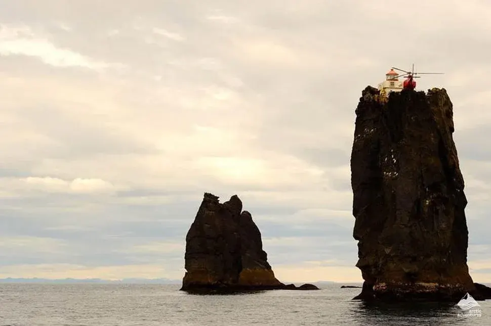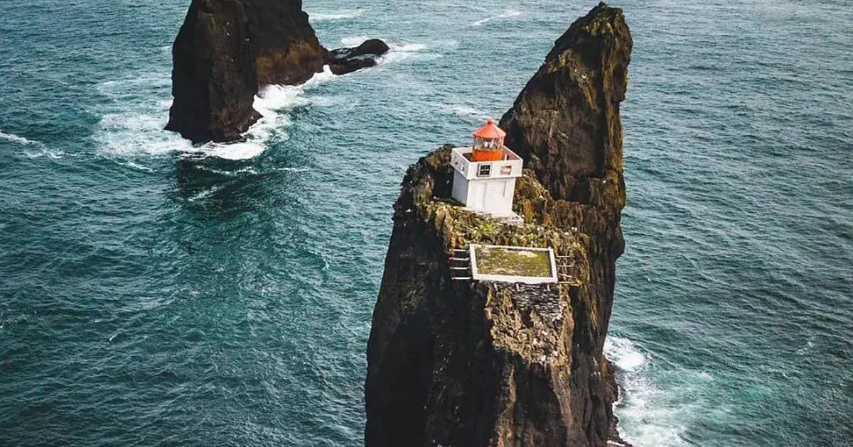 ประภาคารแห่งนี้ตั้งอยู่บนกลุ่มโขดหินชื่อ Þrídrangar ซึ่งแปลตรงตัวว่า “เสาหินสามต้น” โผล่ขึ้นจากทะเลอย่างโดดเด่นราวกับประติมากรรมของโลกยุคดึกดำบรรพ์ โดยอยู่ห่างจากชายฝั่งของหมู่เกาะเวสต์แมน (Westman Islands) ประเทศไอซ์แลนด์ประมาณ 7.2 กิโลเมตร เพียงแค่ระยะทางก็ฟังดูเหมือนไม่ไกลนัก แต่ในความจริง เมื่อคุณเอาระยะทางนี้ไปวางลงบนฉากของทะเลเหนือที่อากาศเปลี่ยนเร็ว ลมแรง และคลื่นจัดอยู่เป็นประจำ ระยะทางสั้นๆ ก็กลายเป็นความไกลที่น่าเกรงใจทันที ตัวประภาคารถูกสร้างไว้บนยอดเสาหินที่สูงที่สุดในสามต้น สูงประมาณ 36 เมตร (120 ฟุต) เหนือระดับน้ำทะเล และนั่นหมายความว่า พื้นที่ซึ่งมันตั้งอยู่นั้นคือจุดที่รับแรงลมและละอองคลื่นอย่างจังตลอดเวลา เป็นความโดดเดี่ยวที่ไม่ใช่แค่ “ไม่มีคน” แต่คือ “มีธรรมชาติเต็มกำลัง” อยู่รอบด้าน