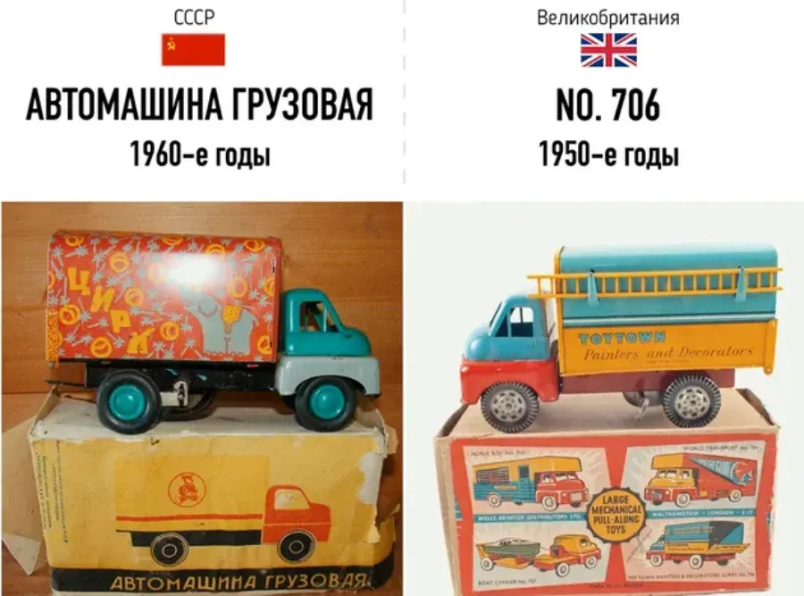 2.ของเล่นจากตะวันตก/อเมริกา: ของเล่นที่สื่อถึงวัฒนธรรมทุนนิยมหรือของเล่นนำเข้า มักถูกจำกัดเนื่องจากข้อจำกัดทางการค้าและแนวคิดทางการเมือง สหภาพโซเวียตสั่งห้ามหรือพยายามกีดกันของเล่นจากฝั่งตะวันตก (โดยเฉพาะสหรัฐอเมริกา) ไม่ใช่แค่เรื่องของความปลอดภัยหรือคุณภาพวัสดุ แต่มันคือ "สงครามทางวัฒนธรรม" และการเมืองที่เข้มข้นมากในช่วงสงครามเย็น