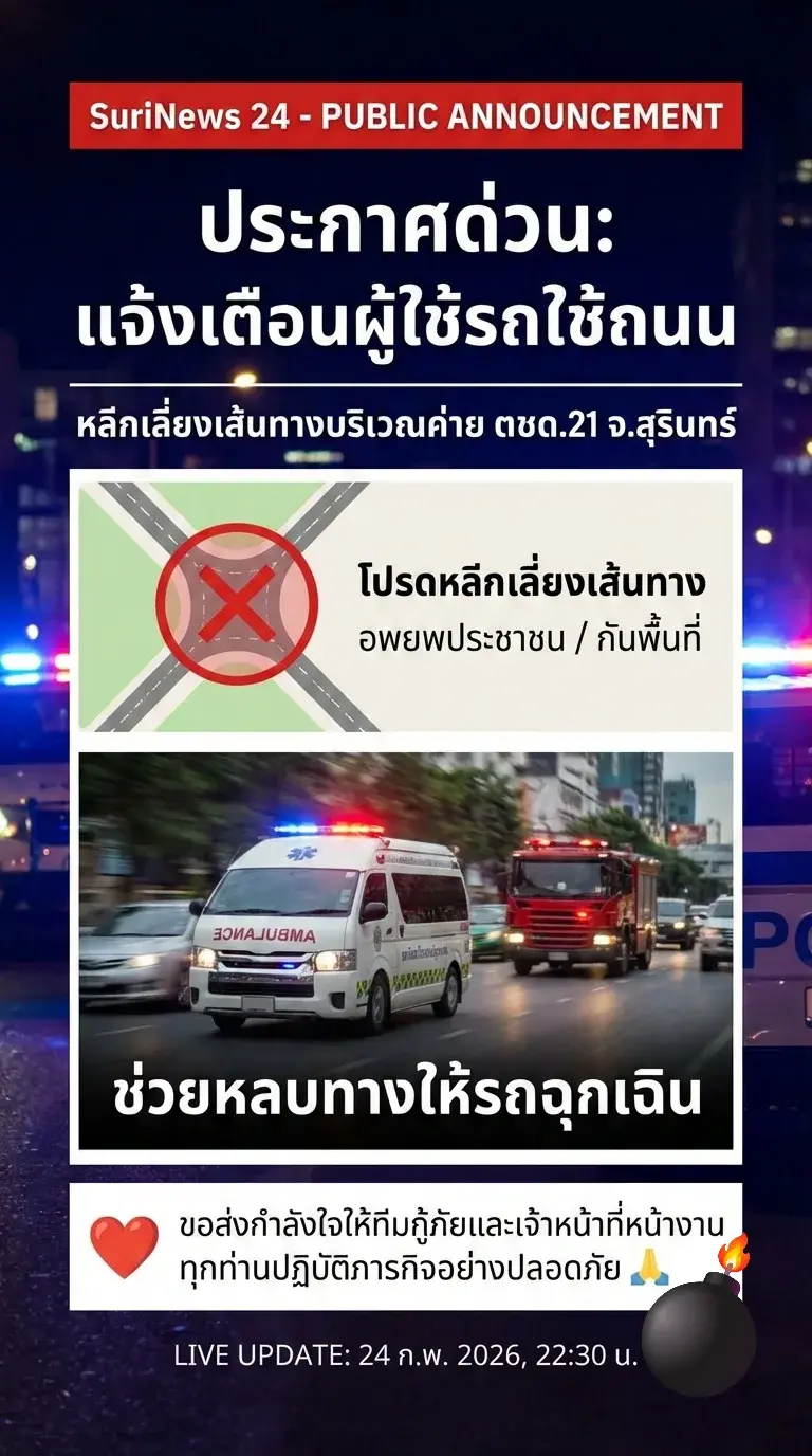 อัปเดตด่วน! เหตุระทึก ตชด.21 สุรินทร์ สั่งกันพื้นที่-อพยพเพื่อความปลอดภัยแล้ว