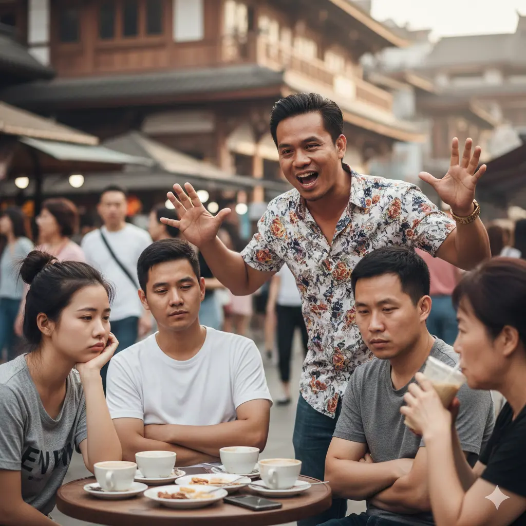 การที่มีคนรอบข้างเป็นคนที่พูดไปเรื่อย ซึ่งเป็นเรื่องที่ไม่จริง หรือจริงแต่เขาก็เติมเสริมแต่งจนไปออกทะเล พูดน้ำไหลไฟดับ แต่พูดจาสนุกสนาน มีอะไรใหม่ให้ฟังตลอด บ้างครั้งก็อยากฟังว่าเนื้อเรื่องตอนจบเป็นแบบไหน แต่สิ่งที่เขาเล่าไม่มีสาระหรือเป็นประโยชน์กับใคร นอกจากตัวผู้เล่าได้ขี้โม้โอ้อวด ตัวเขาเองอาจจะหาเพื่อนให้มาชื่นชมเขา หรือมีคนจ้างเงินเขาให้กระจายข้อมูลนี้ แต่เขายืนยันว่ามันเป็นเรื่องจริง และเขาไม่ยอมรับว่าเขาโกหก และพูดแต่น้ำไม่มีเนื้อเป็นชั่วโมง จนเราเบื่อหงุดหงิดรำคาญ แต่เขาเป็นคนที่ทำให้เราไม่เหงา ได้ฟังอะไรที่เพ้อเจ้อที่เป็นนิยาย ก็ดีกว่าไม่มีใครมาพูดอะไรให้เราฟังไหม