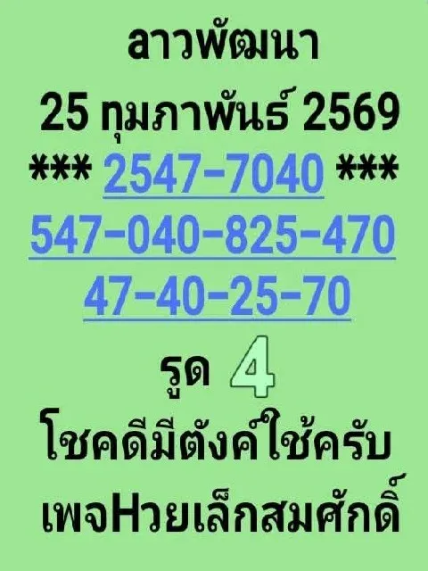 แนวทางหวยลาวพัฒนา งวดวันที่ 25 กุมภาพันธ์ 2569