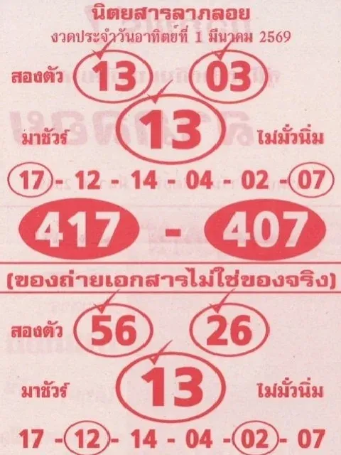 เลขเด็ด เลขมาเเรง เลขดัง "รวมหวยเด็ดสำนักดัง vol.12" งวดวันที่ 1 มีนาคม 2569