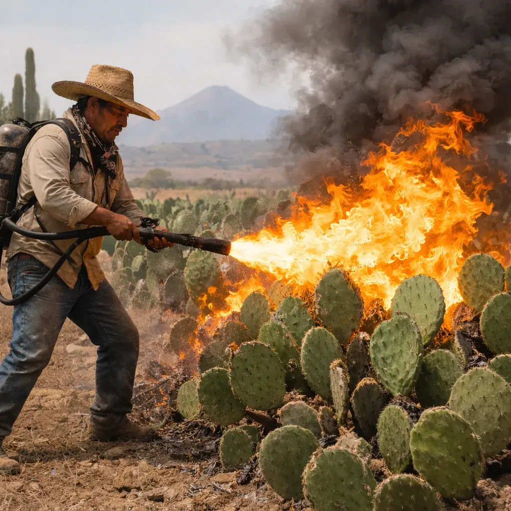 สรุปง่ายๆคือการเผาไฟต้นกระบองเพชรคือการทำให้หนามของต้นกระบองเพชรหลุดออกไปและเป็นอาหารของสัตว์นานาชนิดที่ในเม็กซิโกเกิดสภาวะแห้งแล้งที่สุด