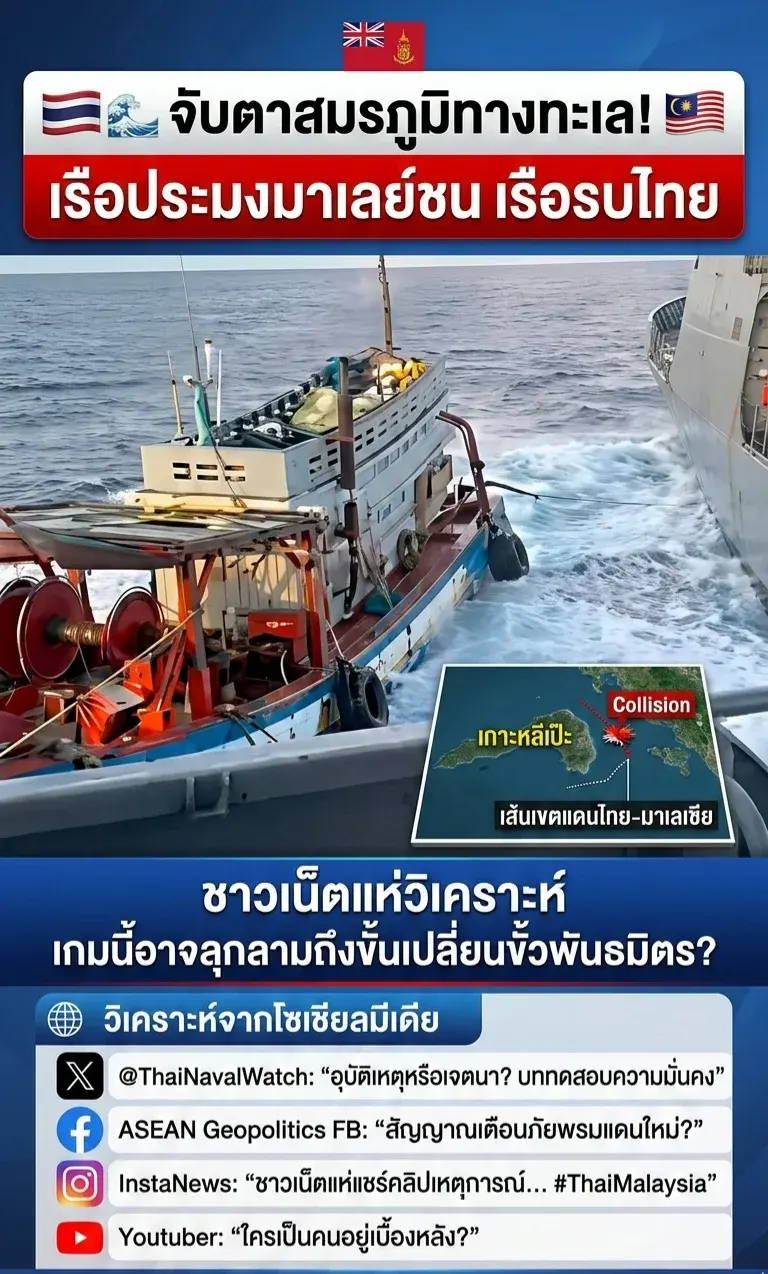 🌊 จับตาสมรภูมิทางทะเล! เรือประมงมาเลย์ชนเรือรบไทย ชาวเน็ตแห่วิเคราะห์ เกมนี้อาจลุกลามถึงขั้นเปลี่ยนขั้วพันธมิตร?