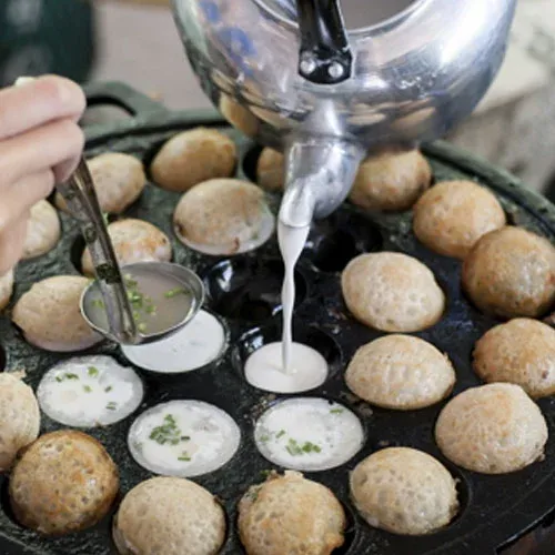 “ขนมครก” ทำจากแป้งข้าวเจ้าและกะทิ หยอดลงบนกระทะหลุมเหล็กร้อนๆ จนสุกเป็นแผ่นกลมขอบกรอบ ด้านในนุ่มละมุน รสชาติหวานมันตัดเค็มเล็กน้อยอย่างลงตัว ความเรียบง่ายของวัตถุดิบกลับสร้างมิติรสชาติที่ซับซ้อนและน่าจดจำ