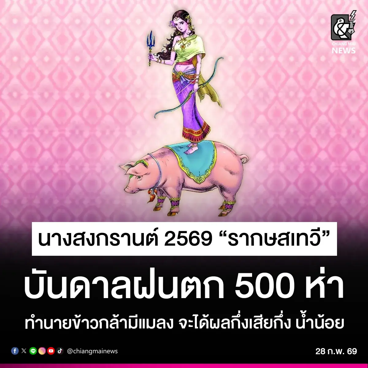 มาแล้ว ‼ 🪷 ประกาศนางสงกรานต์ ๒๕๖๙ "รากษสเทวี" บันดาลให้ฝนตก ๕๐๐ ห่า ข้าวกล้ามีแมลง จะได้ผลกึ่งเสียกึ่ง น้ำน้อย