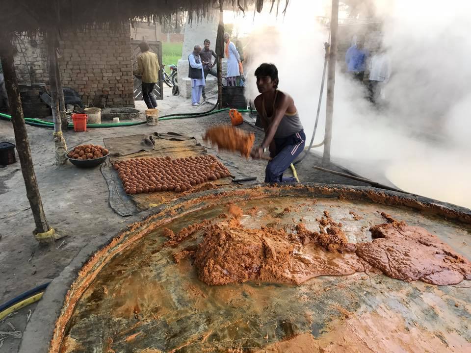 การสร้างในส่วนของน้ำตาลที่มีความหนืดเหนียวให้กลายเป็นก้อนกลม "โรงน้ำตาลในอินเดียกุสินารา