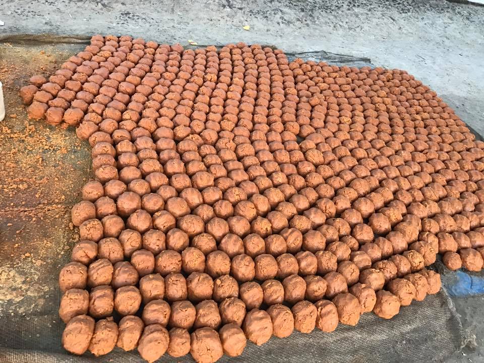นำมาเรียงเมื่อแห้งสีนั้นไม่แตกต่าง เก็บเป็นก้อนนำมาเรียงกันสวยงามเหมือนไข่กลมดี