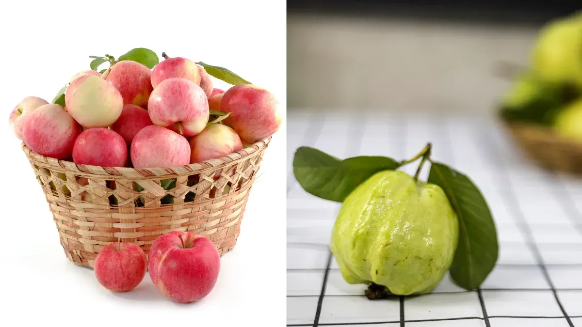 2.ฝรั่ง อุดมไปด้วยแคลเซียม วิตามินเอ โพแทสเซียม ธาตุเหล็ก ใยอาหารจำนวนมาก มีแคลอรี่ต่ำ ช่วยให้รู้สึกอิ่มได้มากขึ้น ปรับสมดุลการทำงานของระบบขับถ่าย ป้องกันและลดความเสี่ยงต่อการเกิดภาวะท้องเสีย ท้องผูก มีการวิจัยที่พบว่าการกินฝรั่งแบบปอกเปลือกจะช่วยลดระดับ น้ำตาล และ ไขมันในเลือด ช่วยเพิ่มปริมาณไขมันดีในร่างกาย ฝรั่งเป็นผลไม้ที่มีวิตามินซีสูง โดยฝรั่งมีวิตามินซีสูงมากกว่าส้ม จึงช่วยป้องกันหวัด ป้องกันโรคลักปิดลักเปิดได้ ฝรั่งปริมาณ 100 กรัม ให้แคลอรี่อยู่ที่ 60 แคลอรี