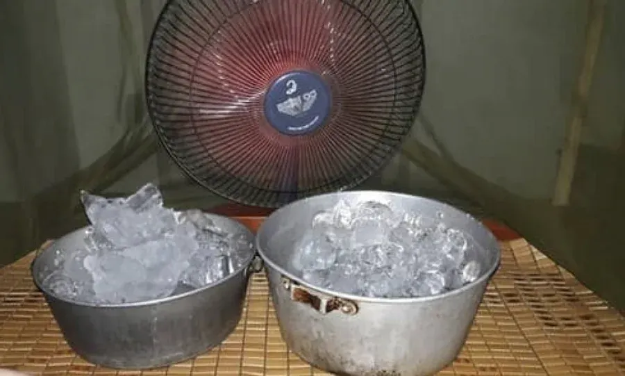 8. การเอาน้ำแข็งวางหน้าพัดลม (แบบเปิด)