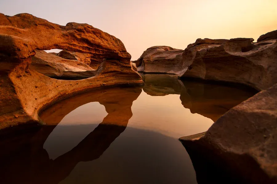 5. สามพันโบก (อุบลราชธานี): แก่งหินขนาดใหญ่ใต้ลำน้ำโขงที่ถูกกัดเซาะจนเป็นหลุมเป็นบ่อมากกว่า 3,000 หลุม มีรูปร่างแปลกๆ เช่น รูปมิกกี้เมาส์ รูปหัวใจ หรือรูปสัตว์ต่างๆ ซึ่งจะชมได้เฉพาะฤดูแล้งที่น้ำโขงลดระดับลงเท่านั้น