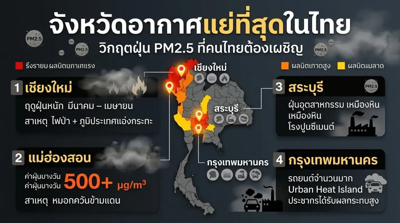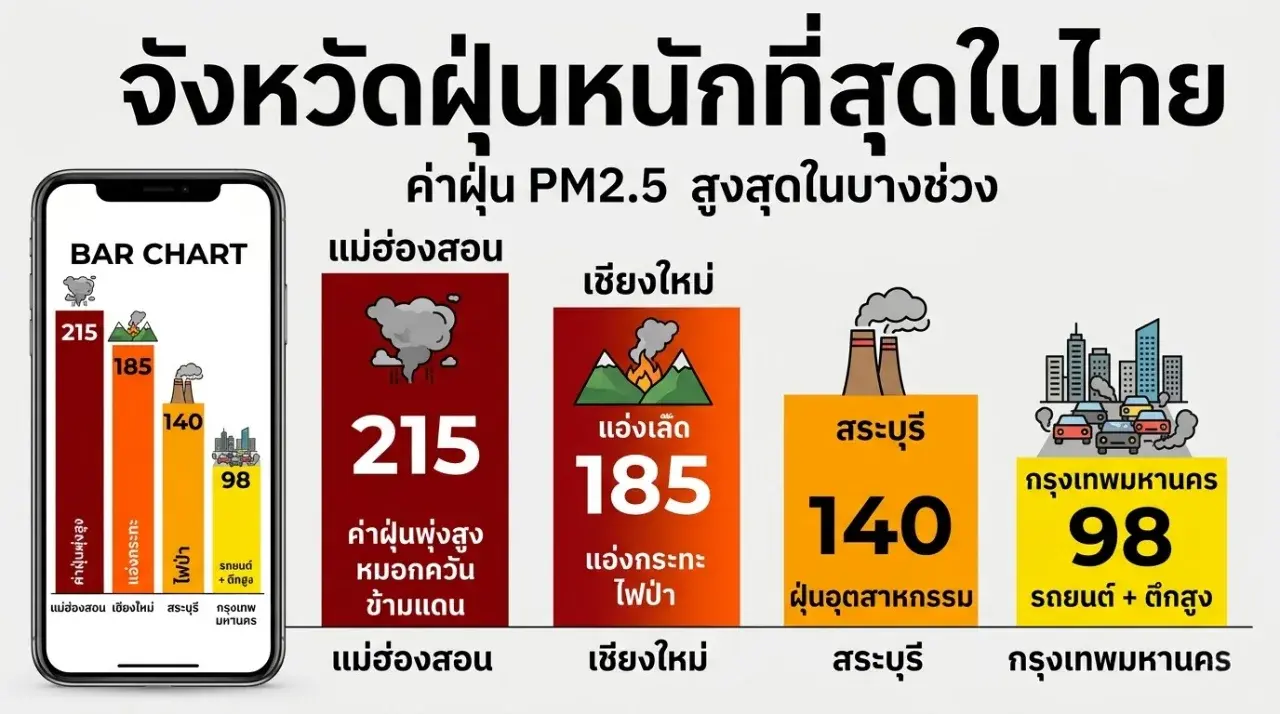 "แชมป์ที่ไม่อยากเป็น: เจาะลึก 'จังหวัดที่อากาศแย่ที่สุดในไทย' และความจริงเบื้องหลังฝุ่นพิษที่เปลี่ยนเมืองสวยให้เป็นเมืองในหมอก (ควัน)"