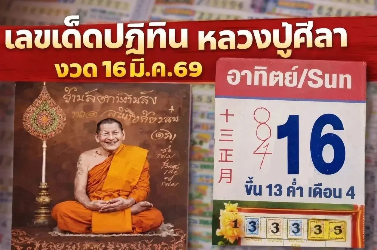 สำหรับหวยในงวดนี้ก็ออกในวันจันทร์ ที่ 16 มีนาคม 2569 เราลองมาส่องดูที่ปฏิทิน "หลวงปู่ศิลา" ก็จะพบว่า ตัวเลขที่ให้มานั้นมันประกอบด้วยเลข 4 - 5 - 2 - 6 - 9 ทั้งนี้ก็สามารถจับคู่เป็นตัวเลขต่างๆ ได้ดังนี้ เลขท้าย 3 ตัว คือ 469, 926, 549, 295, 652 ส่วนเลขท้าย 2 ตัวที่ได้มีดังนี้ 69, 26, 49, 95, 52, 92, 64, 56, 29, 59 สำหรับตัวเลขที่ให้นั้นทุกท่านสามารถนำเอาไปสลับจับคู่กันได้ตามชอบใจ และใช้เป็นแนวทางในการเสี่ยงโชคสำหรับงวดนี้ได้