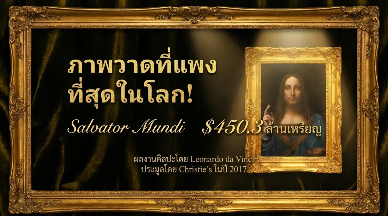 วงการศิลปะโลกต้องสั่นสะเทือน เมื่อภาพวาด Salvator Mundi ผลงานของอัจฉริยะยุคเรอเนซองซ์ Leonardo da Vinci ถูกประมูลในราคาสูงถึง 450.3 ล้านดอลลาร์สหรัฐ (มากกว่า 15,000 ล้านบาท) นับเป็นสถิติสูงสุดตลอดกาลของภาพวาดที่เคยมีการซื้อขาย